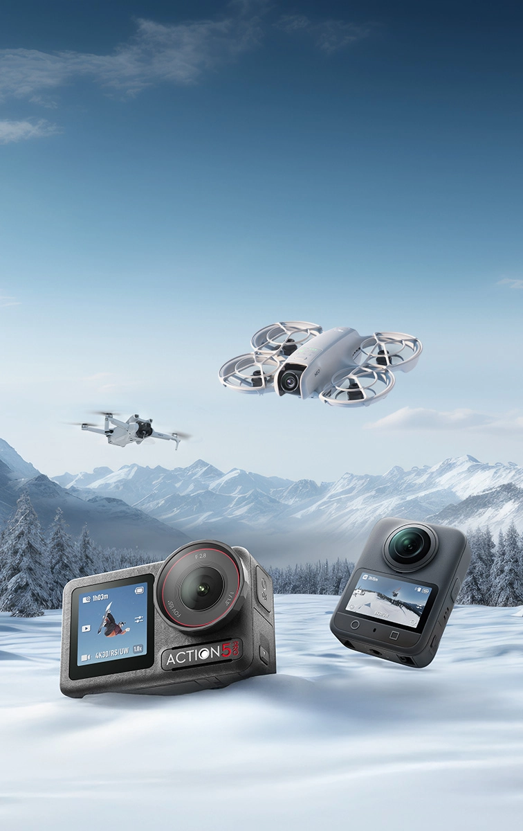 Odkryj szeroką gamę kamer sportowych Osmo Action, kamer z gimbalem Osmo Pocket i mikrofonów bezprzewodowych DJI Mic.