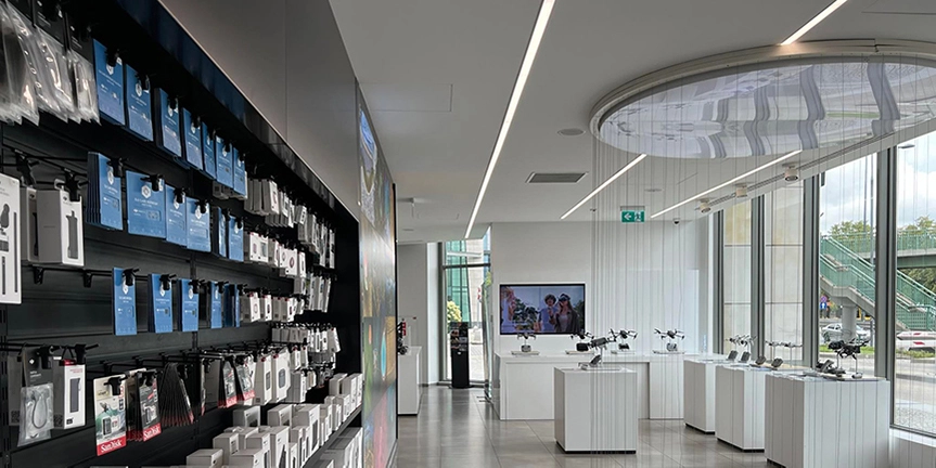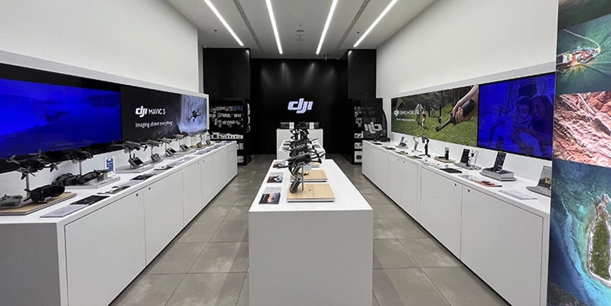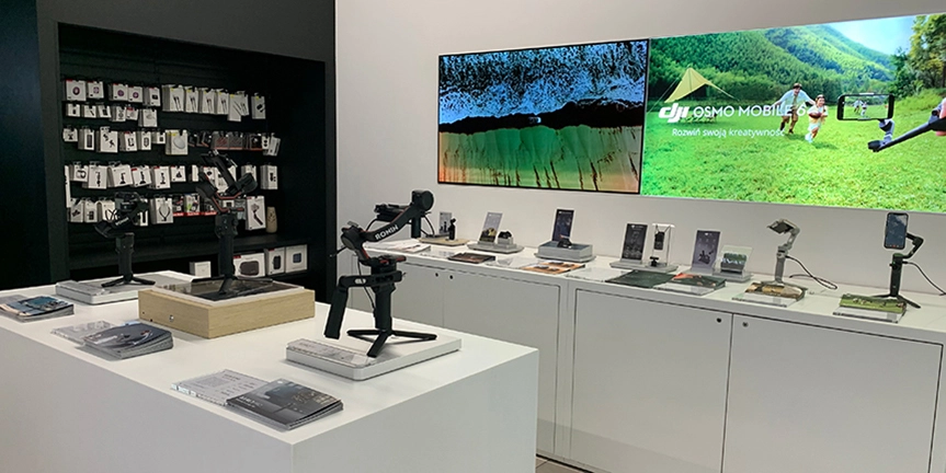 W salonach dostępne są wszystkie produkty DJI – drony, kamery, stabilizatory, gimbale do smartfonów oraz akcesoria. Można tam również kupić usługę serwisową DJI Care Refresh. To jednak nie wszystko. W sklepach stacjonarnych oferujemy też akcesoria innych producentów takich jak PGYTECH czy PolarPro. Dzięki temu każdy może znaleźć coś dla siebie!
