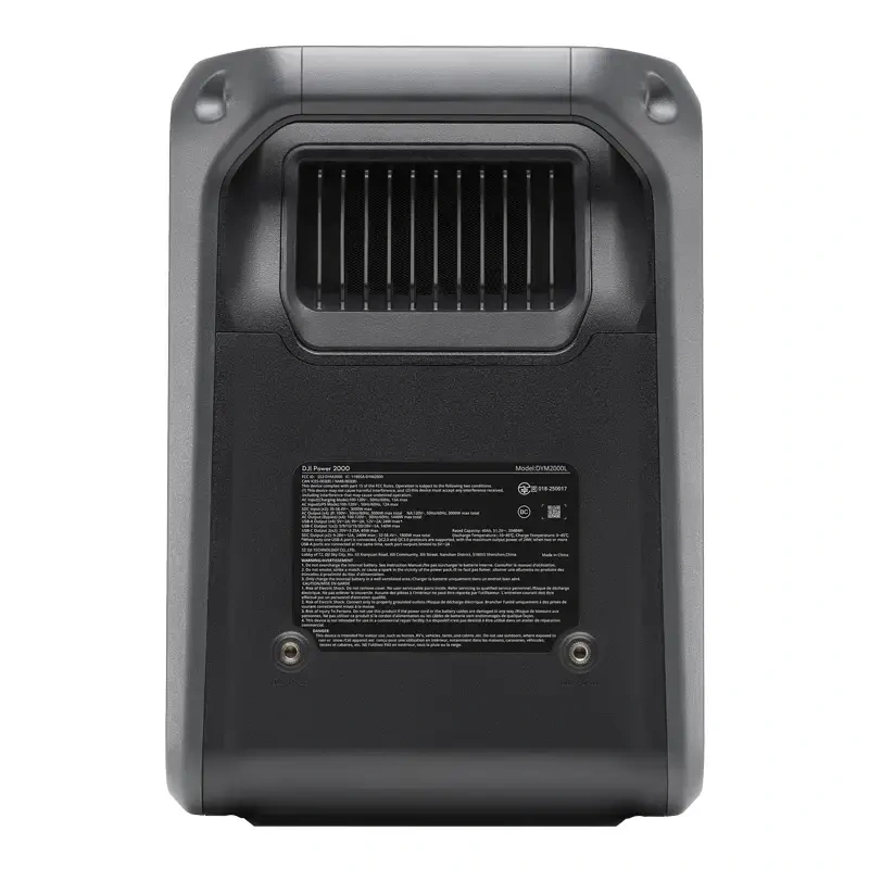 DJI Power 2000 wyróżnia się wyjątkowo solidną konstrukcją – wytrzymuje nacisk statyczny do 1 tony.11 Stacja korzysta także z zaawansowanego systemu zarządzania energią, który stabilnie utrzymuje poziom naładowania akumulatora.12 Ponadto wysokiej klasy ogniwa LFP zachowują 80% pierwotnej pojemności po 4000 cykli ładowania. To przekłada się na około 10 lat codziennego użytkowania!13 14 Na uwagę zasługuje również system BMS, który chroni akumulator dzięki nowej subnano powłoce, 26 czujnikom temperatury i 21 bezpiecznikom. W efekcie DJI Power 2000 może działać nawet przy 45°C!11 Co więcej, inwerter urządzenia został zabezpieczony przed wilgocią – sprawdzi się nad morzem czy na dużych wysokościach.15 16 Stacja powstała przy tym z trwałych, trudnopalnych materiałów – ewentualne upadki i uderzenia nie stanowią dla niej dużego zagrożenia.17